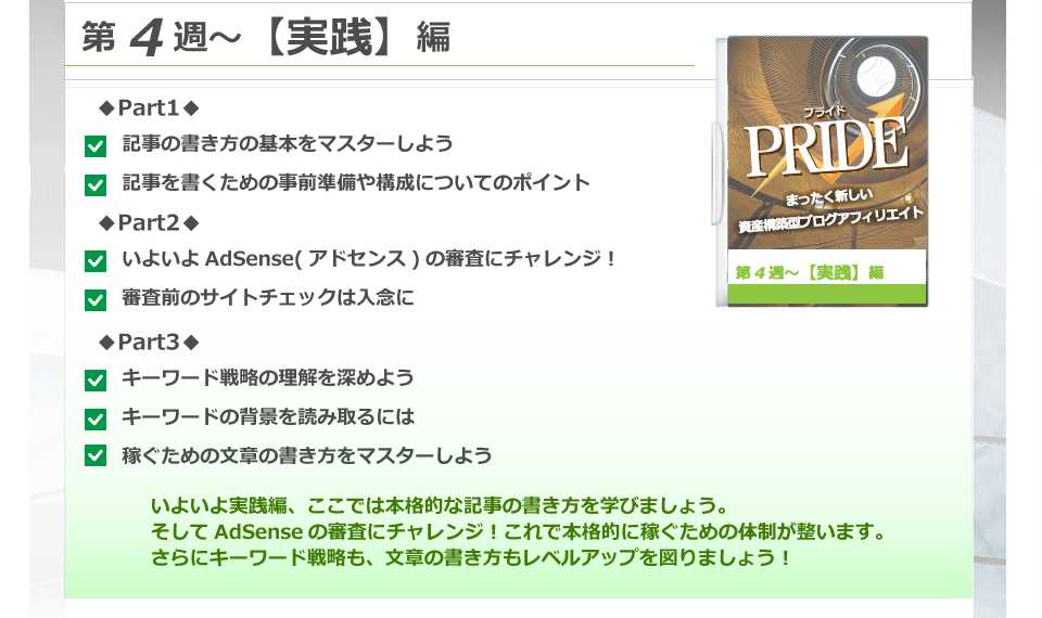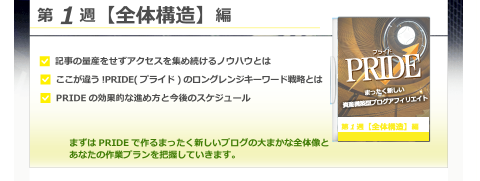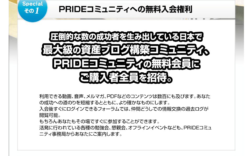 PRIDEの教材ほど、徹底的にノウハウが考えられ、誰でも長期的に成功できる教材は本当に稀だからです。