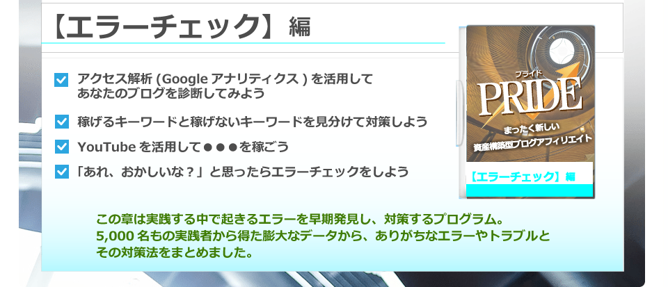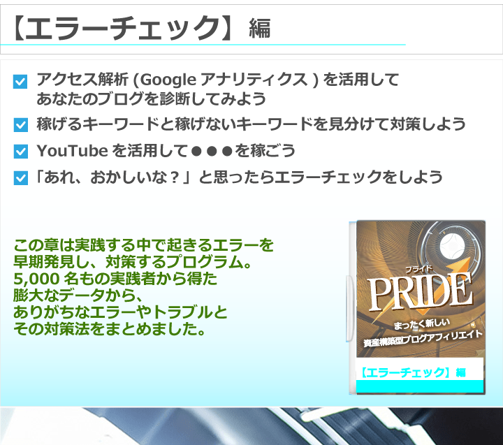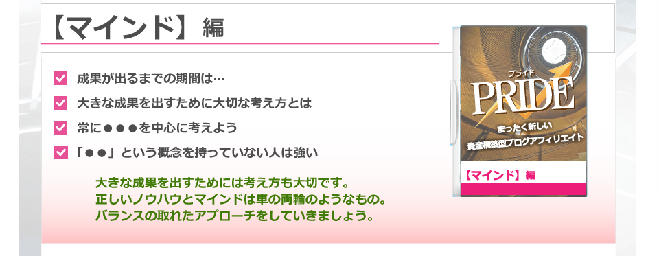 私の度重なる失敗の経験と、アフィリエイト業界の正常化を願ってやまない気持ちが、ついにPRIDEを完成させたと言っても過言ではありません。