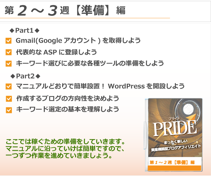 つまり、ブログで収益を上げるための土台づくりはPRIDE1つで十分です。