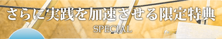 そのための施策は、付属する教材と多くの特典で提供させていただいております。 -