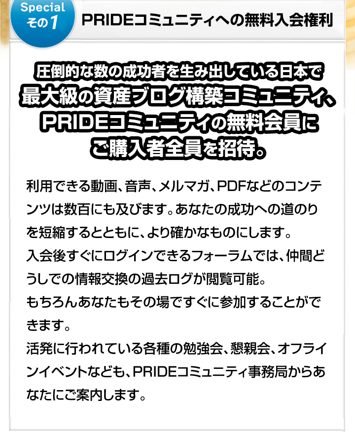 あなたも、PRIDEが提唱する「資産ブログ」を必ず手に入れることができます。