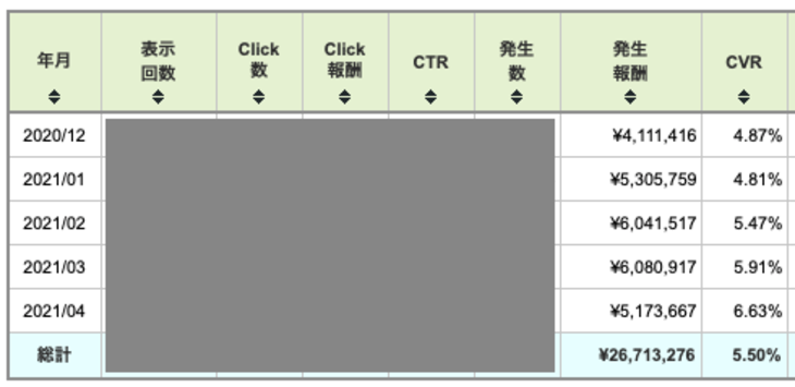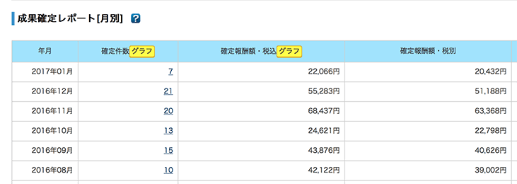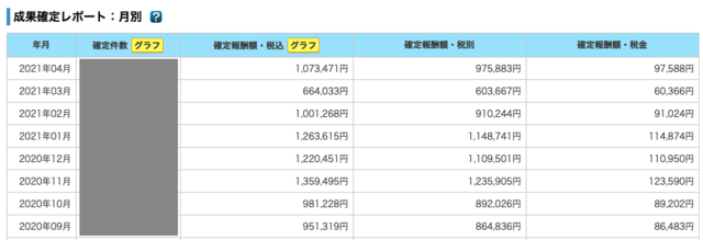 アドセンス以外のASPからも毎月成果が発生しています。